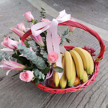 精品花篮包装花语:水果花蓝附送: