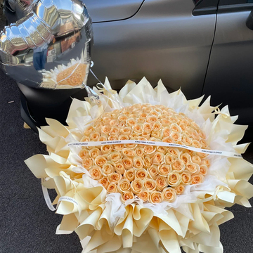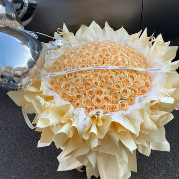 99朵香槟玫瑰,2个银色心形气球