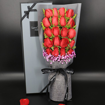 灰色韩素纸+灰色粗麻布包装,黑色英文缎带束扎。长方形礼盒装(颜色随机)花语:不一定合情合理,但一定知心知意!不一定形影不离,但一定心心相惜!附送: