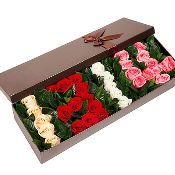 长方形礼盒装(颜色随机)花语:我爱你,一生一世附送: