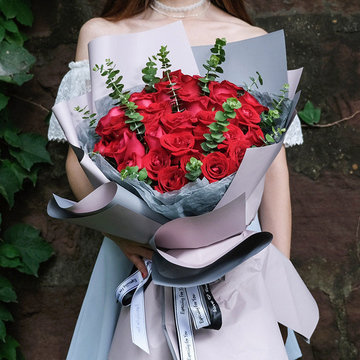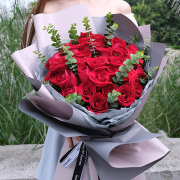 内衬灰色雪梨纸,外层粉+灰双面欧雅纸层次包装,白色和黑色英文丝带束扎花语:本想偷你的心来看看就还给你的,没想到小偷遇上强盗,我的心反被你抢走了!附送: