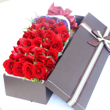 33朵红玫瑰鲜花礼盒,黄莺搭配