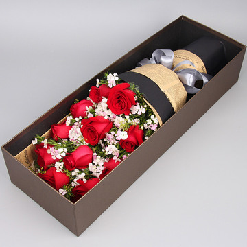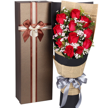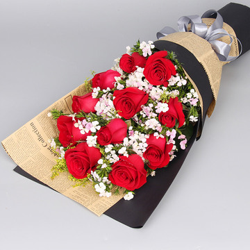 精选11枝红玫瑰,搭配石竹梅。