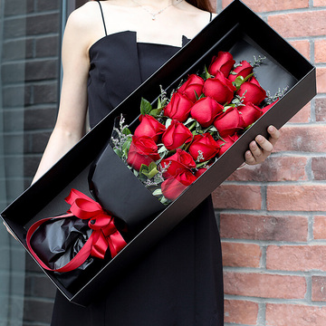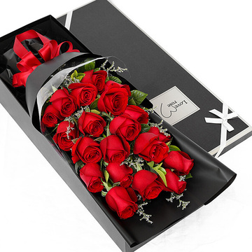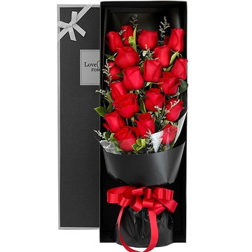 内衬玻璃纸,外层黑色雾面纸扇形包装,红色缎带束扎,礼盒装花语:爱情路。弯弯路,弯得像一串珍珠,每一步都有简单的领悟。我只想,每个朝朝暮暮,都和你共度。附送: