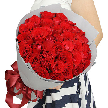 精选33朵优质红玫瑰。