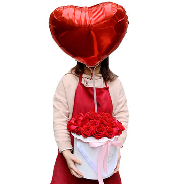 白色抱抱桶包装,粉色丝带束扎花语:花店玫瑰,名字写错谁,告白气球,风吹到对街,微笑在天上飞附送: