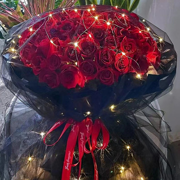 99朵红玫瑰,灯带多条,黑纱盖头