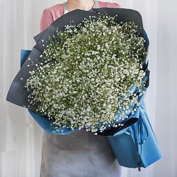 墨蓝+灰双面欧雅纸圆形包装,蓝色丝带束扎花语:你那么耀眼,像璀璨星光照亮了我的心附送:
