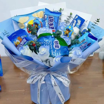 溜溜梅、趣多多、奥利奥、阿尔卑斯、薯片等蓝色系列的零食