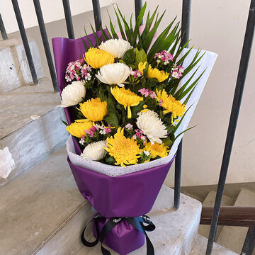 13支黄白菊混搭,粉色相思梅,散尾叶