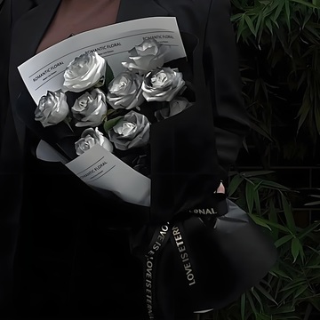 简约纸内衬,外层黑色欧雅纸包装,缎带束扎花语:遇见,是一段美好的开始附送: