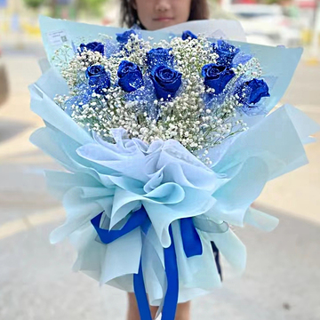 11枝蓝色妖姬,白色满天星丰满