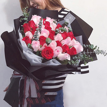 内衬白色雾面纸,外层黑色韩素纸层次圆形包装,红色及银色丝带束扎花语:一生至少该有一次,为某个人而忘记自己,不求有结果,只求在最美的年华遇见你....明人不说暗话,我想和你在一起。附送: