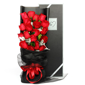 黑色牛油纸扇形包装,黑纱束腰包裹,红色缎带束扎,长方形礼盒装花语:我曾经跨过山海大海,也跨过人山人海,直到遇到你,才知道,这是唯一的答案。附送: