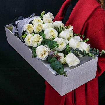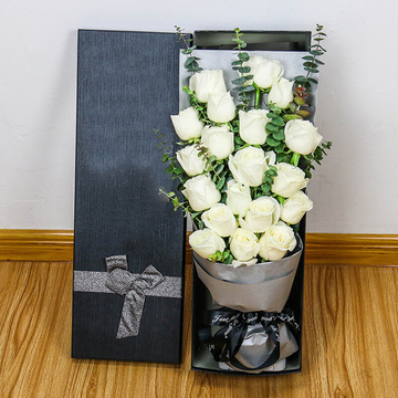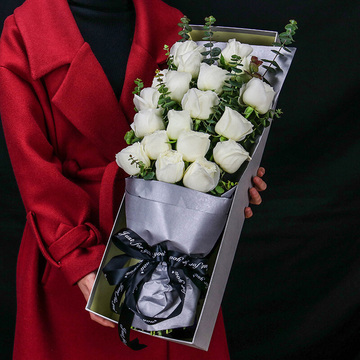 银色珠光纸扇形包装,黑色英文缎带束扎,礼盒装(颜色随机)花语:微风伴着花香,吹来爱的气息。用一颗真心轻轻爱你,温柔的话只说给你听。附送: