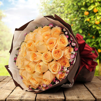 33朵精品香槟玫瑰,相思梅外围丰满点缀