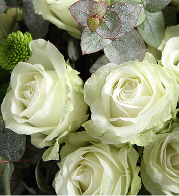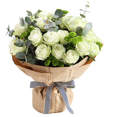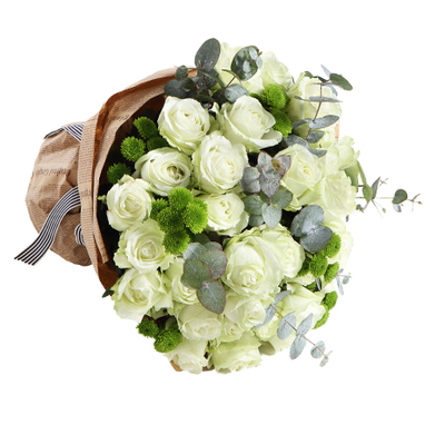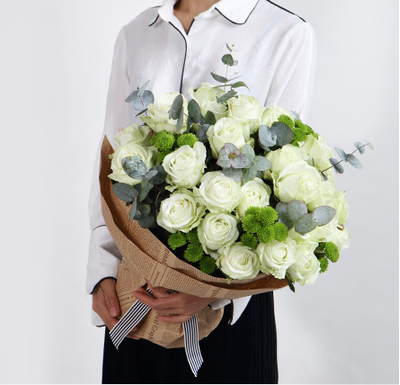 雪山白玫瑰33支、搭配尤加利,小邹菊