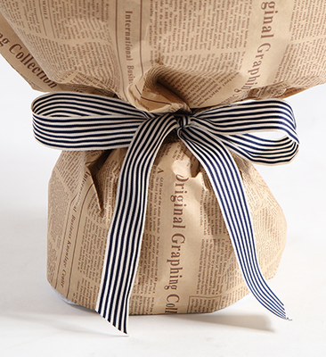 英文报纸2张,白蓝细条纹带系蝴蝶结束扎花语:我追着梦的光点,是因为有了勇气,才不怕危险,我的梦没有上限,给我力量继续往前。附送:
