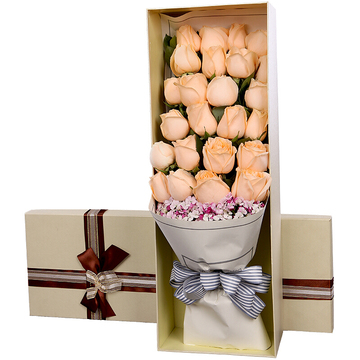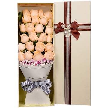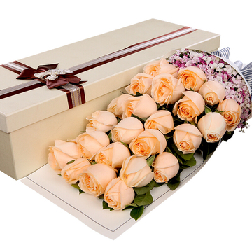 精美长方形礼盒包装。花语:如果人生需要一场雨,那一定是美丽的相遇,如果人生需要一句话,那一定是美丽的鲜花,如果人生需要一辈子,那一定是和你相知相守的这辈子。附送: