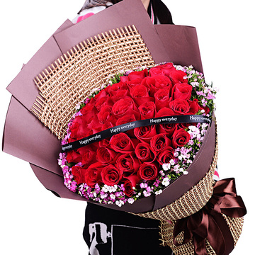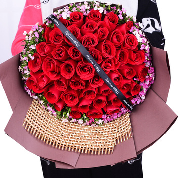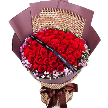 52朵红玫瑰,粉色石竹梅外围丰满围边