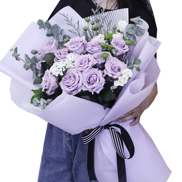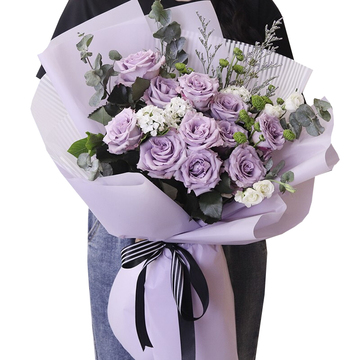 精美扇形包装,蝴蝶结束扎。花语:喜欢像是一阵风,而爱你是细水长流附送: