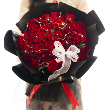 66朵红玫瑰,灯带、白色蝴蝶结
