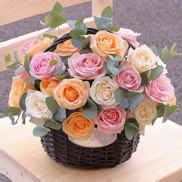 精美手提花篮包装花语:把无数的思念化做心中无限的祝福,默默的为你祈祷。附送: