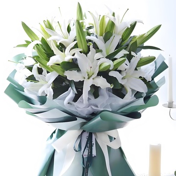绿色欧雅纸包装,缎带束扎花语:祝福你一世平安附送: