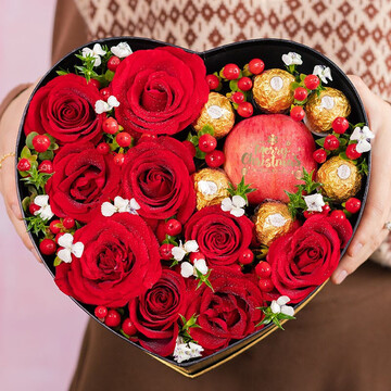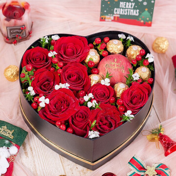 心形礼盒装(颜色随机)花语:欢乐圣诞,幸福有你附送: