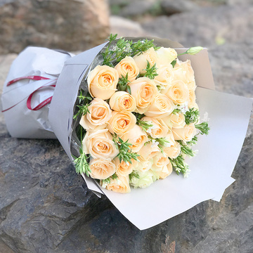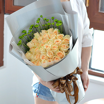 33朵香槟玫瑰,绿色小菊搭配