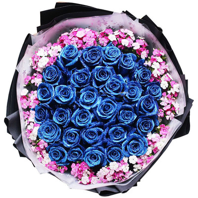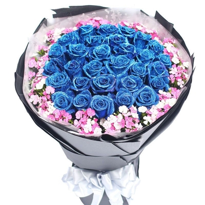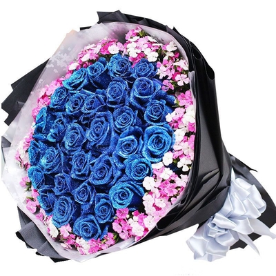 黑色硬纸圆形包装花语:情倾于你,唯爱一生。附送: