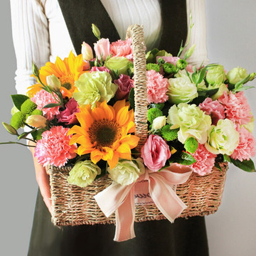 精美花篮包装花语:愿所有的情深意重,都能换来一生温柔。附送: