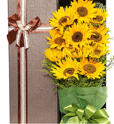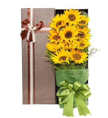绿色纱纸等包扎,绿色丝带束结。长方形合作包装。花语:每次见到你,我的心就会飞扬,我也希望你每天都有一个美丽的心情。附送: