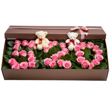 33朵戴安娜玫瑰,配草搭配,2只小熊