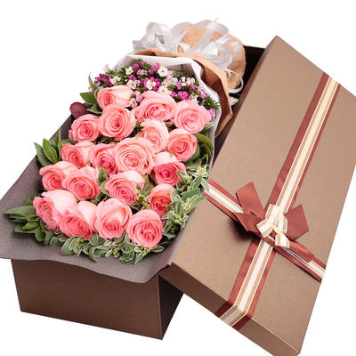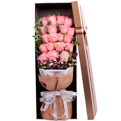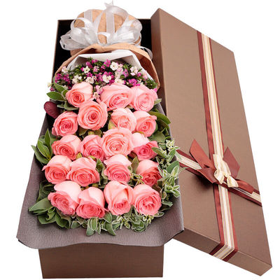 19枝戴安娜粉玫瑰,石竹梅丰满点缀,栀子叶、高山积雪间插