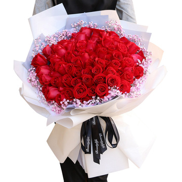 99朵红玫瑰,粉色满天星丰满围边