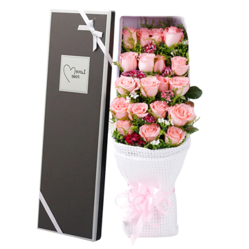 白色粗麻片扇形包装,粉色缎带束扎,精美礼盒包装(礼盒颜色随机发)。花语:以不变的赤诚之心,相约一起白头偕老。附送: