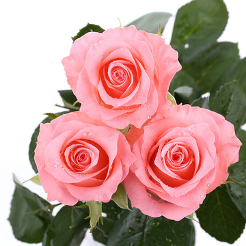 精选19枝戴安娜粉玫瑰,搭配黄莺、石竹梅。