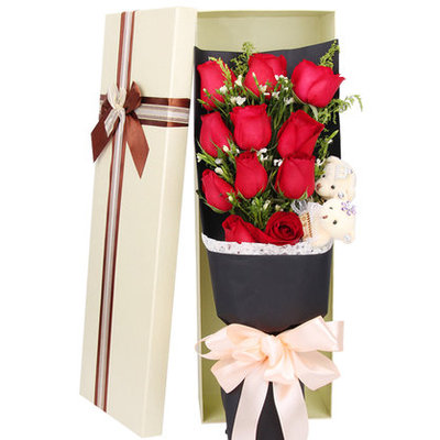 高档礼盒,黑色硬纸托底包装,白色缎带蝴蝶结束扎。花语:你是我童话里的白雪公主,我就是你今生今世的爱情奴仆附送: