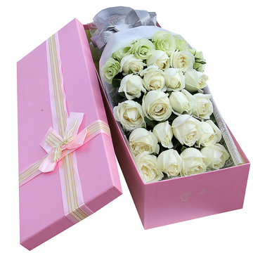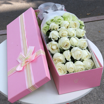 白色英文雾面纸扇形包装,银色缎带束扎,长方形礼盒装(颜色随机)花语:只要你肯向我伸出手余生的路我牵着你的手陪你走附送: