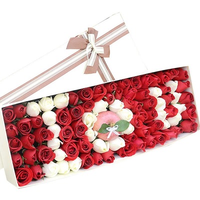 59朵红玫瑰,26朵白玫瑰,1颗苹果