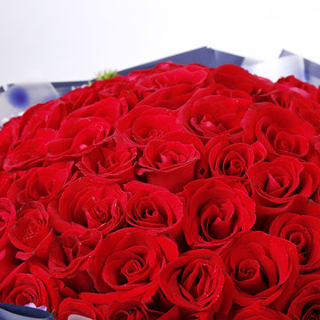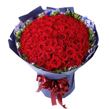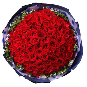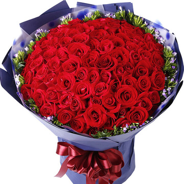 透明英文塑料纸,外蓝色古典纸,搭配红色丝带。花语:不管我在不在你身边,但是我的爱会把你包围,仰望天空,我就是那颗最亮的星星。附送: