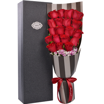 精美长方形礼盒包装花语:请“幸福万年”做媒,邀“天长地久”牵线,让“海枯石烂”见证,送“一世真情”给你,真心相伴,快乐相守,共同奋斗,奔赴白头,这是我对你最好的祈祷:希望你快乐到老!附送: