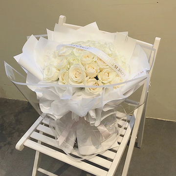 白色纸和玻璃纸包装花语:大千世界,你是我最重要的人,时时刻刻都想陪在你身边,让你的肩膀不再孤单。附送: