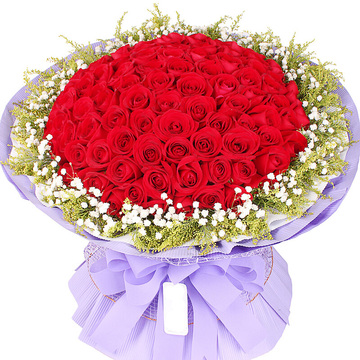 99朵红玫瑰,黄莺和白色满天星丰满围边