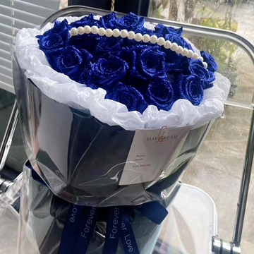 21朵蓝色妖姬(鲜花),珍珠装饰