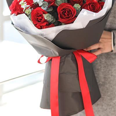 外围黑色特种纸圆形包装,内衬透明纸,红色蝴蝶结束扎。花语:三生三世的爱请附送: