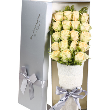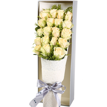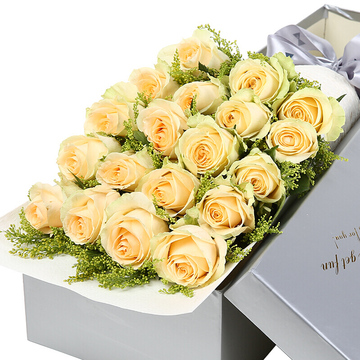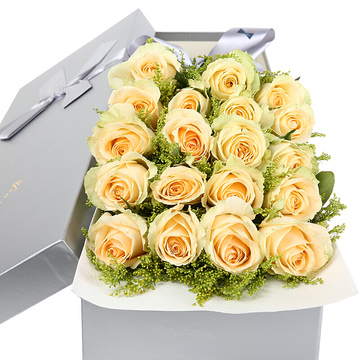 19朵优质香槟玫瑰,黄莺搭配。