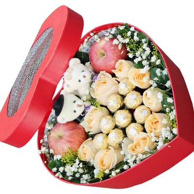 9朵香槟,9颗巧克力,2个平安果,随机赠送两只小熊