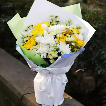 白色欧雅纸包装花语:祭祀扫墓花束附送: